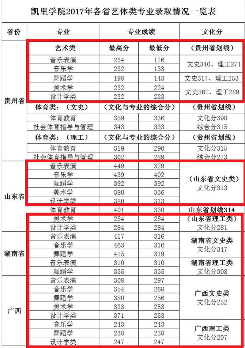 本文为大家整理的是凯里学院2017-2019年艺术类录取分数线,希望对大家有所帮助,如有异议,还请以各省市教育考试院和学校公布的信息为准。
